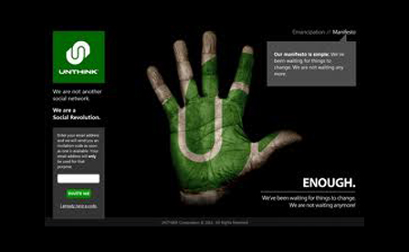 Facebook'u kendine rakip seçen Unthink, kullanıcılarına özgürlük vaad ederek yola çıktı. Kullanıcı bilgilerini markalara satmayacağını açıklayan site yöneticileri, kişilerin sayfasında yer alacak markaları kendilerinin seçeceğini belirtiyor. Sosyal ağın ana sayfasında yer alan “özgürlük ve kontrol yol ayrımı” tabelası sitede kişisel haklara duyulan saygıyı ön plana çıkarıyor. Unthink.com yayına geçebilmek için DouglasBay Capital\'den 2.5 milyon dolar fon desteği aldı. Dürüstlük sloganıyla site, sosyal ağ kullanıcılarını bilinçli olmaya çağırıyor. Facebook'un reklam gelirlerine de göz diken site, kullanıcıları kendi sayfasına çekmeye çalışıyor.